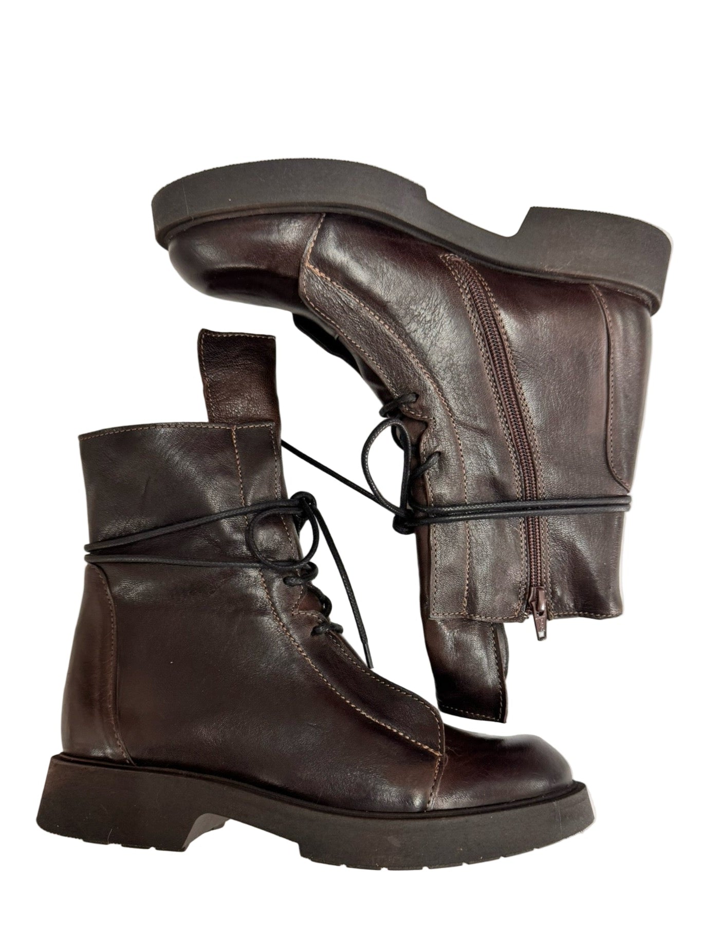 ANFIBIO IN PELLE LAVATA COLOR T.MORO , DAL CARATTERE DECISO E INTRAMONTABILE. IL DESIGN CON LACCI FRONTALI E ZIP LATERALE RENDE LA CALZATA PRATICA SENZA RINUNCIARE ALLO STILE. LA LAVORAZIONE LAVATA DONA ALLA PELLE UN EFFETTO MORBIDO E VISSUTO, PERFETTO PER LOOK URBAN E CASUAL. LA SUOLA ROBUSTA ASSICURA COMFORT E RESISTENZA, IDEALE PER UN UTILIZZO QUOTIDIANO.
